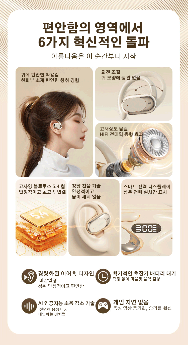 비삽입 귀걸이형 무선 블루투스 이어폰